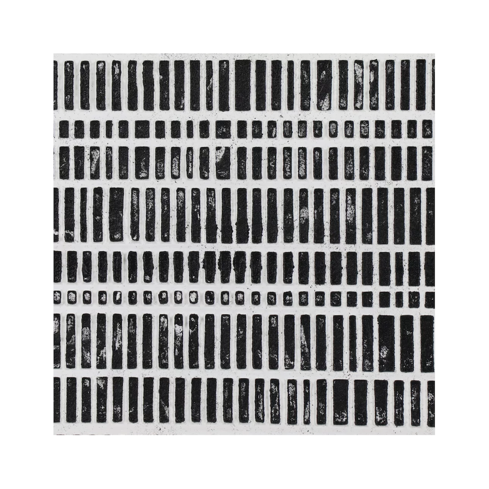La collection BLANCHE de Pomax s'enrichit d'une nouvelle exploration du rythme et de la matière. Cette œuvre propose une vision plus graphique et contrastée de l'art abstrait. Ici, la texture laisse place à un jeu optique fascinant : sur un fond noir profond, une grille de fines lignes blanches s'organise en un motif systématique et vibrant. La composition évoque un code digital, une partition musicale moderne ou un tissage graphique. Encadrée de bois de pin naturel qui vient réchauffer l'ensemble, cette pièce de caractère structure l'espace avec une force tranquille et une élégance indéniable.