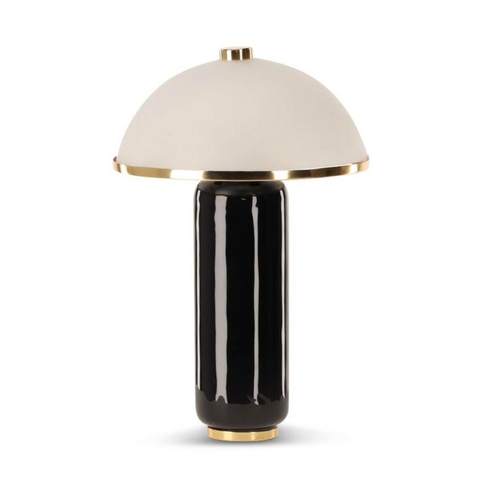 Une silhouette iconique, un design intemporel. La lampe Omnia est un hommage vibrant à l'élégance du mouvement Art Déco. Sa base cylindrique en fer laqué d'un noir profond et brillant lui assure une présence sobre et chic. De subtiles touches de métal finition laiton à sa base et sous son abat-jour viennent rehausser l'ensemble d'une note précieieuse. Elle est coiffée d'un superbe globe en verre opalin blanc qui diffuse une lumière douce, homogène et non éblouissante, parfaite pour créer une ambiance feutrée et chaleureuse.