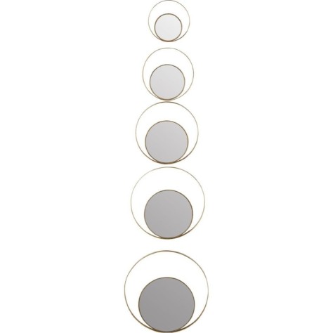 Créez une décoration murale unique et poétique avec ce set de 5 miroirs modulables en métal doré, inspirés des phases de la lune pour un intérieur bohème chic.