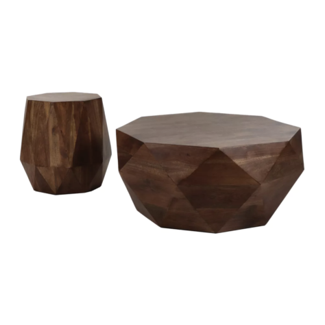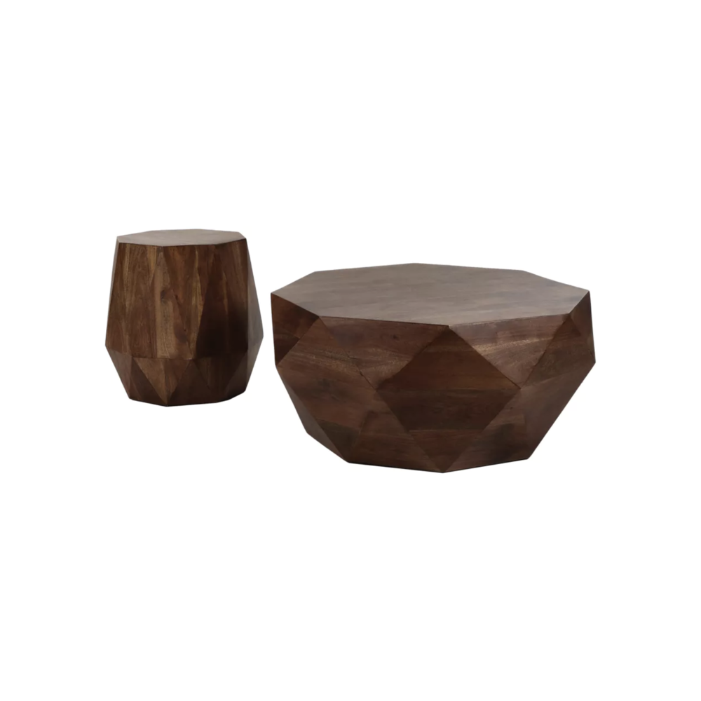 Telle une gemme taillée dans le bois, la table basse Edenburg apporte une présence sculpturale et chaleureuse à votre salon grâce à son design facetté en bois d'acacia.