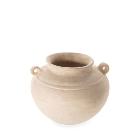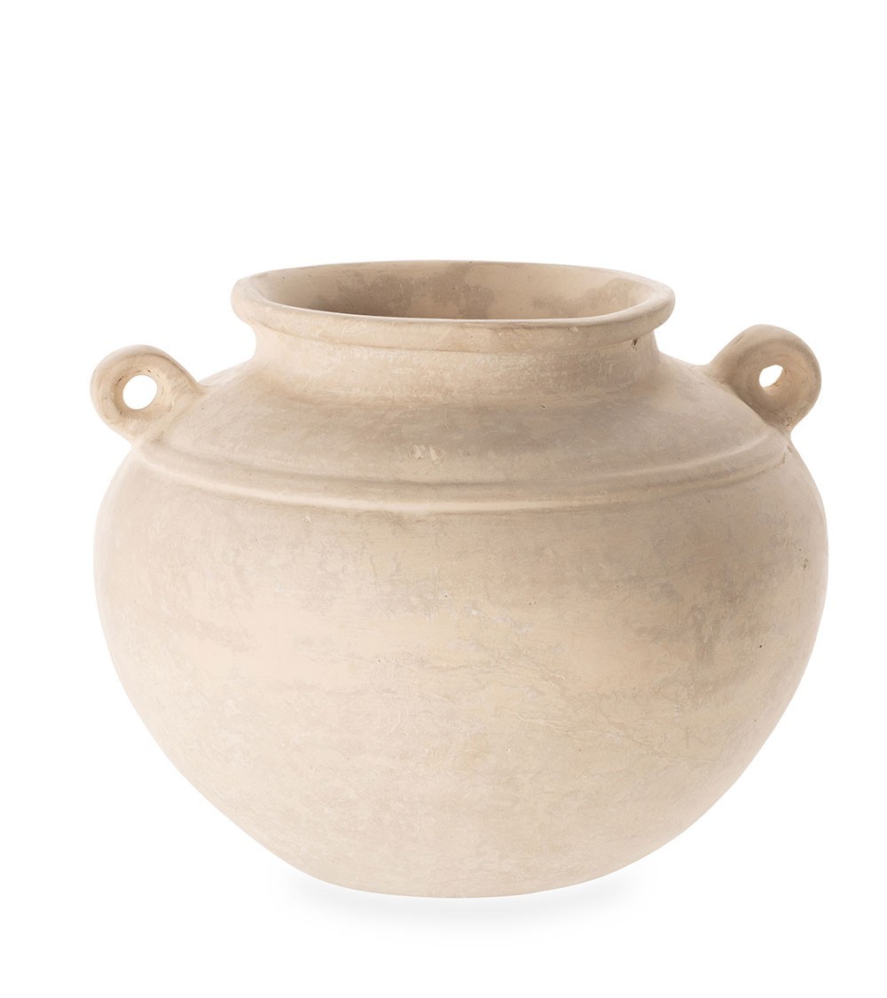 C'est la définition même du charme wabi-sabi et bohème. Posez-le sur une console en bois brut, une cheminée ou une étagère. Laissez-le vide pour apprécier la pureté de sa ligne, ou garnissez-le de quelques branches d'olivier ou d'eucalyptus. Sa teinte blanc cassé et sa matière brute se marient à la perfection avec des murs texturés et des matières naturelles.