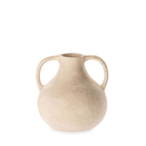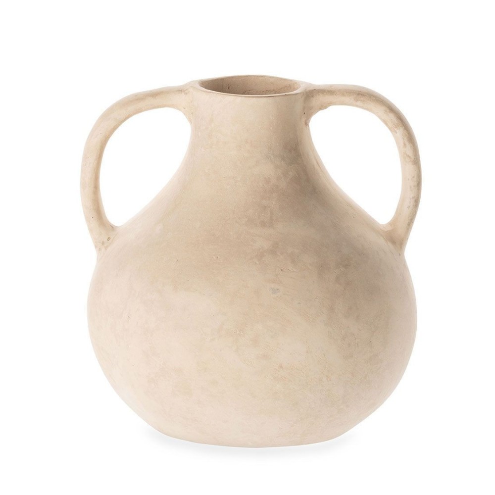 Compagnon idéal de notre pot Ulysse, le vase Pénélope poursuit l'éloge des formes antiques et des matières brutes. Sa silhouette généreuse et arrondie, inspirée des amphores grecques, est sublimée par deux grandes anses délicates qui lui donnent toute sa personnalité. Entièrement réalisé en papier mâché, il surprend par son incroyable légèreté et sa texture unique, mate et poudrée. Sa teinte blanc cassé, douce et lumineuse, évoque les murs blanchis à la chaux des îles méditerranéennes. C'est une pièce sculpturale, un fragment de poésie pour votre intérieur.