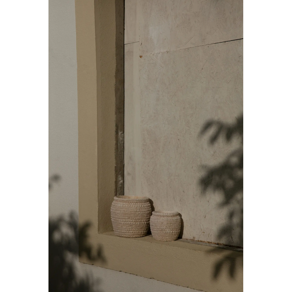 Parfait en cache-pot, le contraste entre le vert du feuillage et la matière minérale du pot est magnifique. Il est la quintessence du style bohème-moderne ou wabi-sabi. Le faux-semblant du tressage fait écho aux matières naturelles comme le bois et le lin, tandis que le ciment apporte une touche de modernité. N'hésitez pas à présenter les deux tailles en duo pour créer une composition rythmée.