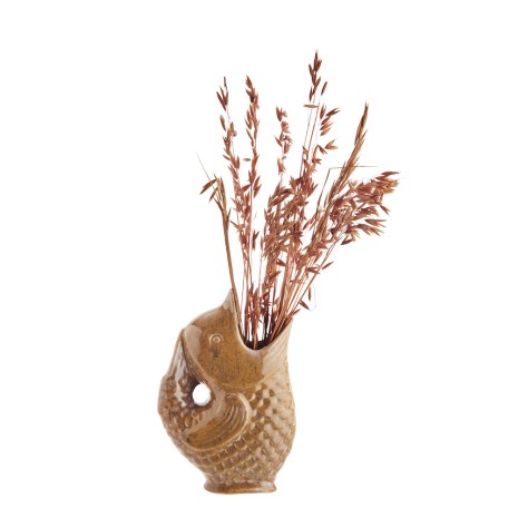 Apportez une touche de fantaisie bohème à votre intérieur avec ce vase poisson en grès artisanal, une pièce de caractère texturée signée Madam Stoltz.